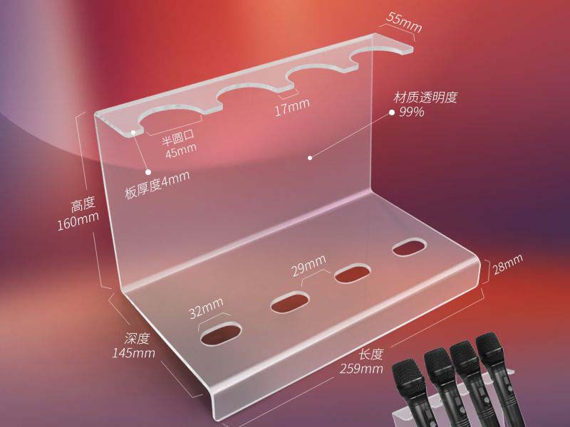 亞克力具有高透明度,像水晶般清澈透明,能讓麥克風(fēng)清晰展示,從各個(gè)角度都能完美呈現(xiàn)其外觀細(xì)節(jié),有效吸引消費(fèi)者目光。